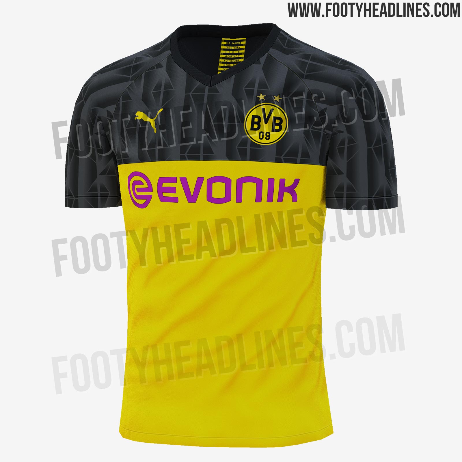 O conhecido site "footyheadlines" vazou a possível nova camisa do BVB para competições Europeias e Copas na próxima temporada 2019-2020. Na parte superior um detalhe preto chama a atenção. Também há poucos dias havia vaszado s fotos da nova camisa reserva preta.